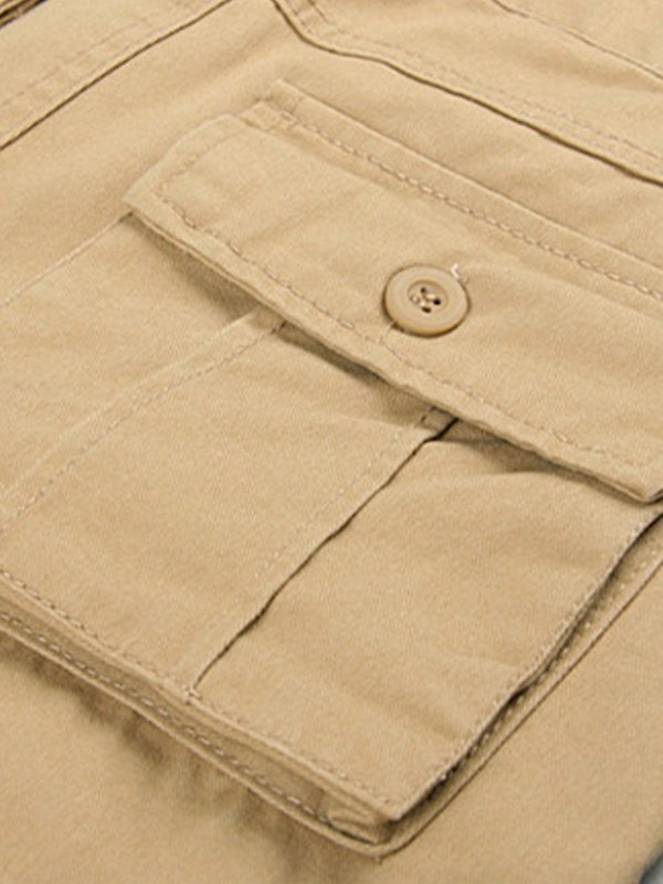 Description: These function cargo shorts for mens cut to a slim straight-leg silhouette, it has cargo-style leg pockets, with drawstring tie detail on the cuffs, and a button zip fly closure design.