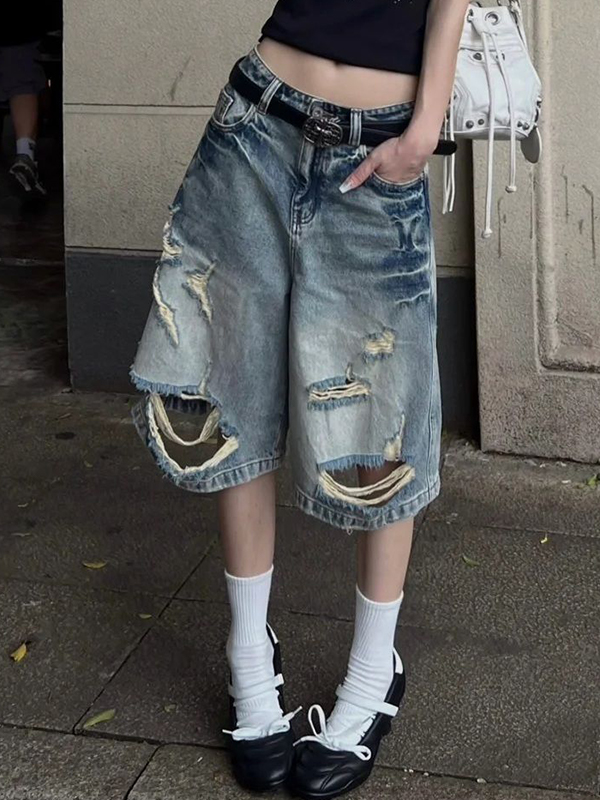 Worn Out By Washing Denim Shorts