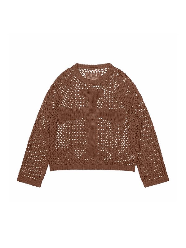 Cross Pattern Crochet Hollow Long Sleeve Knit Top