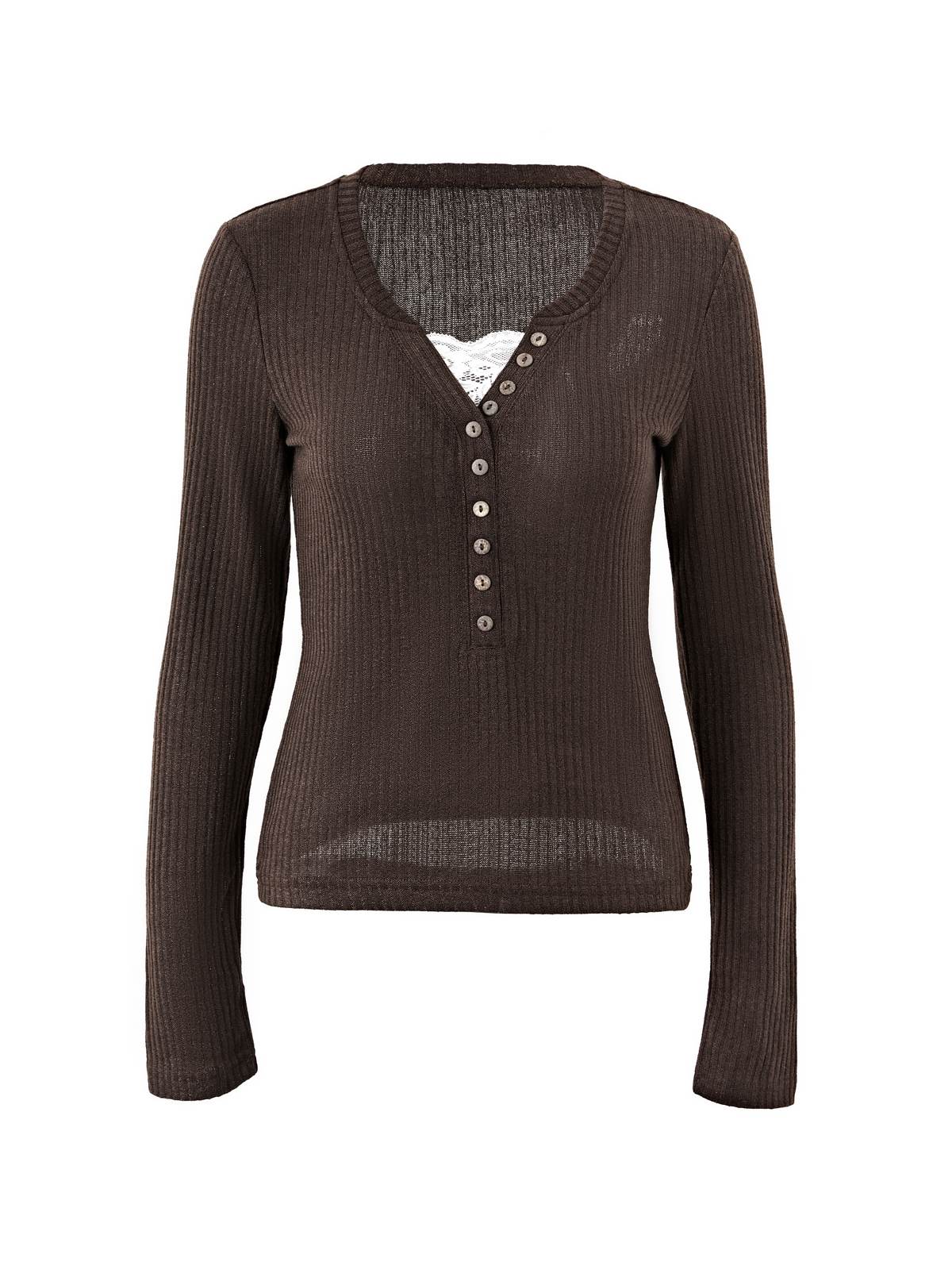 Be the first to review “Lace Paneled Button Long Sleeve Knit Top”