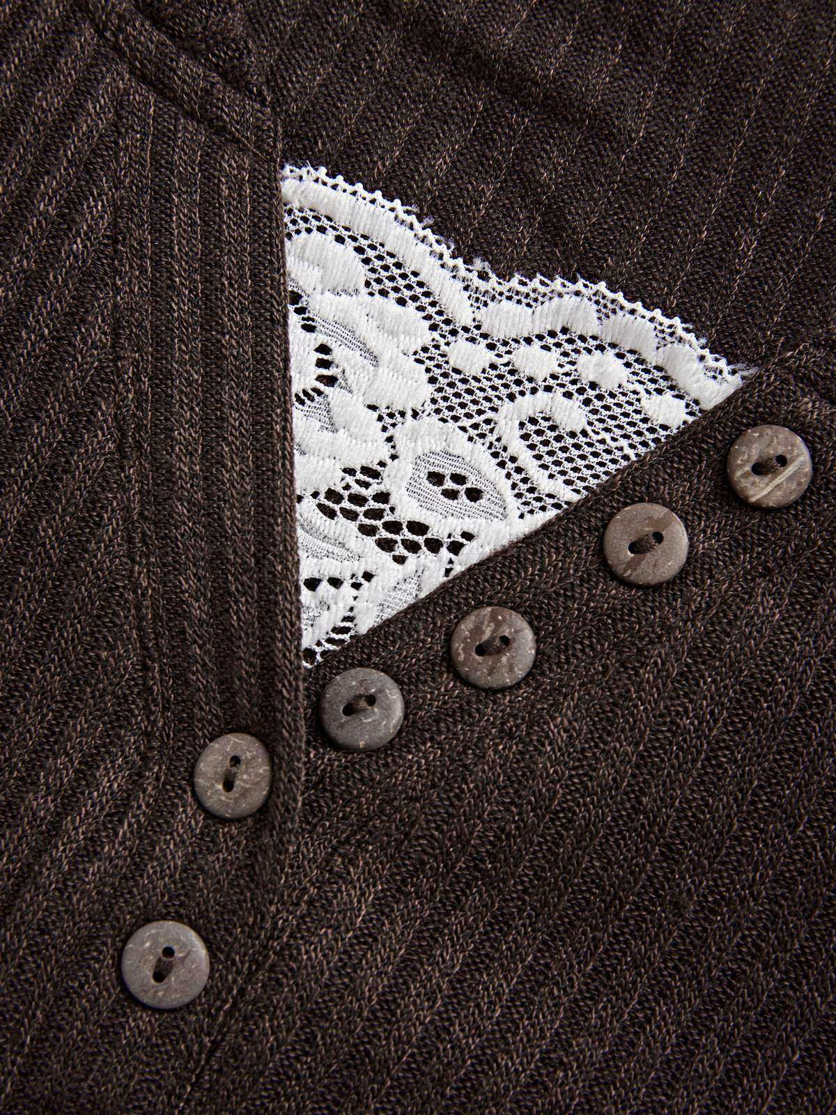 Lace Paneled Button Long Sleeve Knit Top