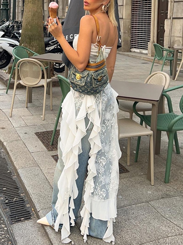 Be the first to review “Lace Splice Irregular Ruffled Hem Cami Top”