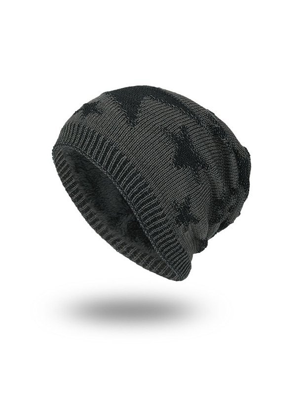 Star Jacquard Warm Fleece Lined Beanie Hat