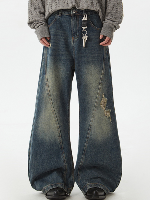 Men’s Multiple Pocket Colorful Print Loose Jeans